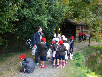 子どもたちが、いきいきと夢中になって、どんぐりや落ち葉を集めています。