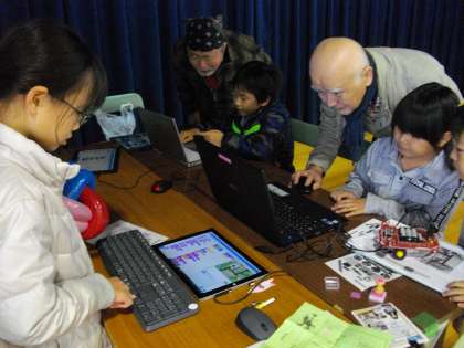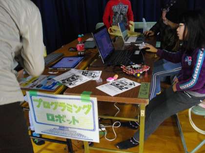 今福子どもカーニバル(4)で紹介するのは、元プログラマーの地域の方による「プログラミング・ロボット」のコーナーです。