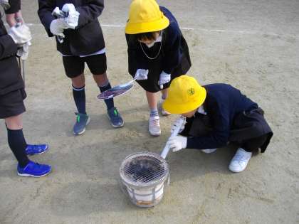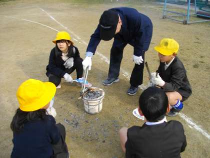 令和2年1月16日(木)のとても寒い朝、地域の方々のご協力で、3年生が「七輪体験」をしました。