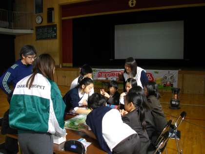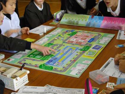 6〜7人のグループに対して、お一人ずつトヨタの方から指導していただき、子どもたちはゲーム感覚で自動車や環境問題について楽しく学ぶことができました。