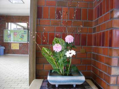 写真は、上から順に玄関、ろーか、校長室に活けていただいたお花です。