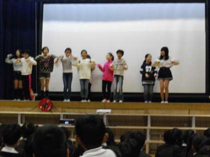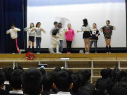 最初に、DVDによる音楽発表をした後、舞台でダンスを披露しました。みんなとても楽しそうでした。