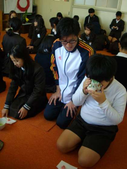 平成26年11月27日(木)5年生児童が茶道体験をしました。実際にお茶を点てる体験は、全員がはじめてのことでした。また、児童にとって、和菓子生菓子をいただくのは、めったにないことです。「和のこころ、おもてなしのこころ、礼に始まり礼に終わる」さまざまなことを学んだ茶道体験でした。地域の講師の先生、丁寧なご指導を本当にありがとうございました。