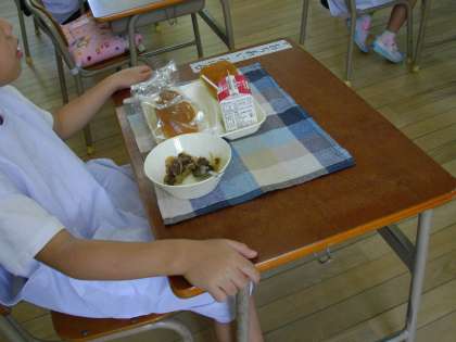 本日のメニューは、パン、牛乳、スキ焼き煮でした。
