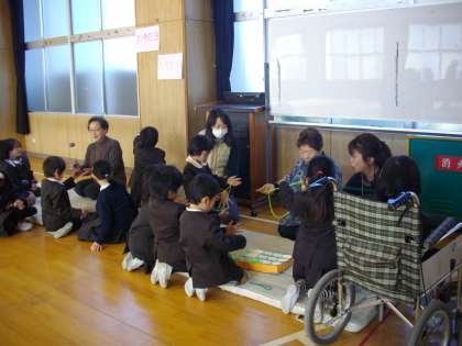 平成26年12月3日(水) 今福連合町会・女性部・民生委員の方のご指導のもと、1年生が、「あやとり」「こままわし・けんだま」「はねつき」の、各コーナーをまわり、「昔の遊び」を体験しました。とても楽しい時間になりました。高価なゲーム類などではなく、「身近にあるもので、楽しく遊ぶ。」ということを体験しました。本当に、ご指導いただいた皆さまありがとうございました。