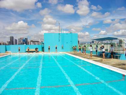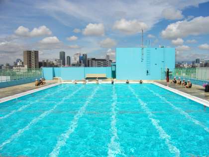 先週とは違い、今日は朝からよく晴れました。絶好のプール日和でした。
