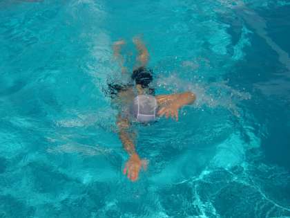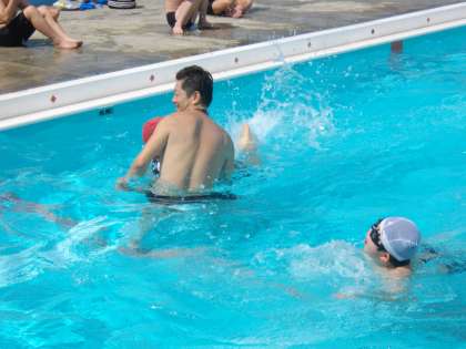 子どもたちは、25mをクロール等で泳ぎ切るため、みんな頑張りました。