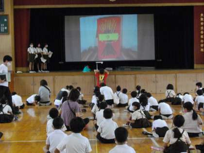 毎週、木曜日の朝、児童集会が体育館で行われます。
