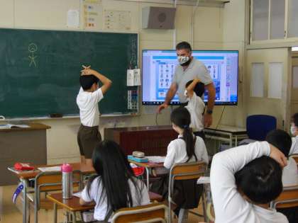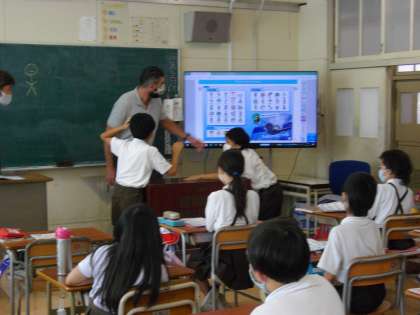 毎週月曜日に、大阪市教育委員会より派遣されている、外国語指導助手(C-Net)のMatt先生が、5・6年生児童に英語を教えています。