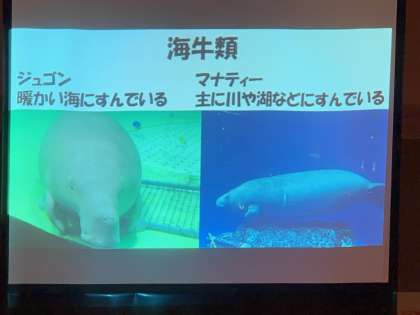 教養セミナーでは、ジュゴンとマナティーの違いなどを学びました。
