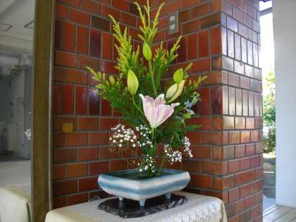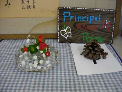 毎月、木島さんがボランティアとして、正面玄関、廊下、校長室の3か所に、かわいいお花を活けてくださいます。
