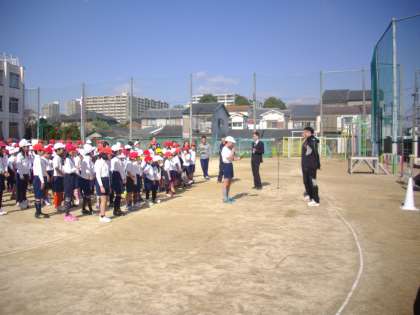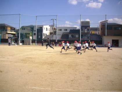 講堂での、お話があり、次に、運動場で、全児童が実際に走りました。早く走るための練習方法や、本気で取り組む重要性、強い心を持つことなど、体験をとおして、多くのことを学びました。