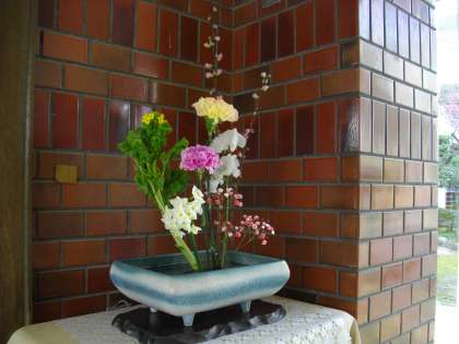 3月に入って、まだまだ寒い日が続きますが、正面玄関に活けられたお花は、さくら、スイセン、菜の花など、春が近づいて来たことを感じさせるお花ばかりです。