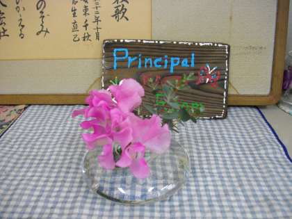 卒業式前日に、ボランティアの木島さんに、正面玄関、ローカ、校長室に、お花を活けていただきました。