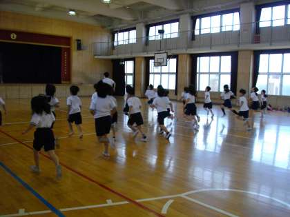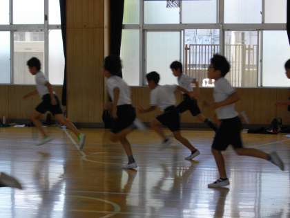 6月3日から新体力テストを実施しています。今日は2年生と5年生がシャトルランをしました。まずは、5年生がお手本になって、スタート。次は2年生が走る番です。5年生のペアが応援しながら、記録をはかります。汗びっしょりになってがんばりました。