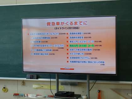 コロナ禍で、消防署からの署員の派遣が難しい中、「応急手当普及員認定証」の資格を持っている教頭先生に講師を務めていただきました。