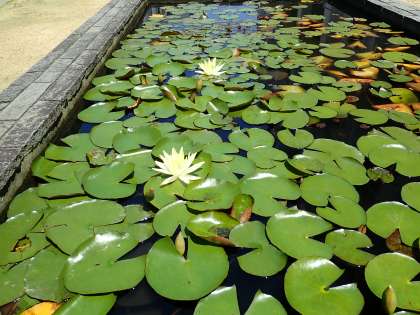 中庭の池に、うすい黄色のスイレンが咲きました。とても美しかったです。
