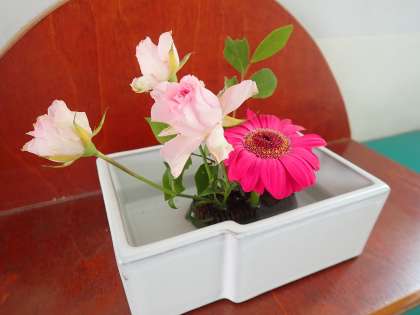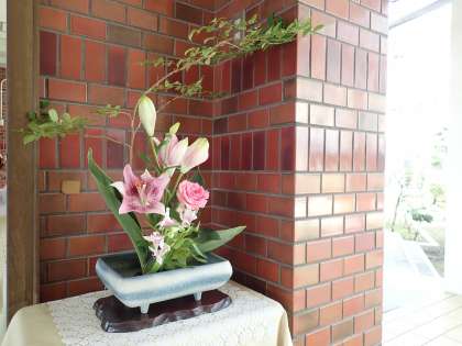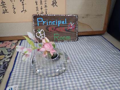 先週6月11日、金曜日に木島さんが来校され、いつものように正面玄関、校長室、廊下にお花をいけていただきました。
