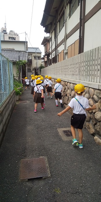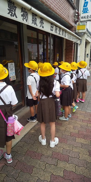 今週の火曜日と金曜日に校区たんけんに行きました。今福校区の中の公園や老人憩いの家、水門、神社などを回ってきました。途中、「アジサイがきれいにさいているね」「こんな実がいっぱいおちているよ!」などいろいろな発見が。また保育所の前では、「一年生をがんばっているよ!」とアピールしていました。途中で出会う地域の方にもしっかりとあいさつができる1年生です。ご家庭でもお話を聞いてあげてくださいね。