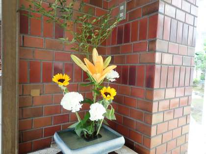 いつものように、木島さんがボランティアで玄関、廊下、校長室にお花を活けてくださいました。