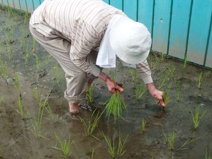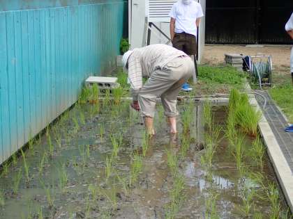 子どもたちが、少し深く苗を植えすぎたもの、逆に、浅く植えたものなど、正しい深さに植えかえていただきました。