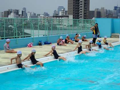 1・2年生は、プールに入るのがとてもうれしそうで、気持ちよさそうに泳いでいます。