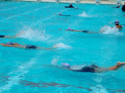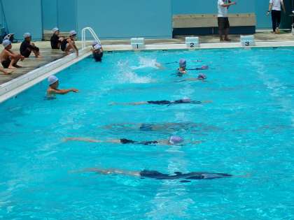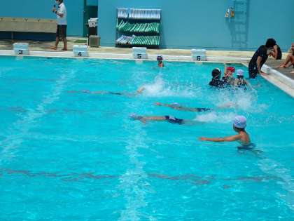 午前中は、よく晴れてとても暑かったので、プールに入るのが気持ちよさそうでした。 バタ足やビート板を使っての泳ぎ方も、ずいぶん上手になりました。