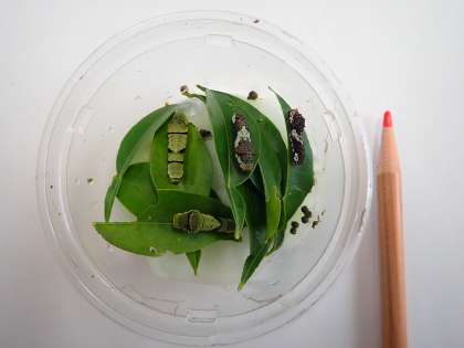 ※食草:柑橘系(かんきつけい)の木の葉を食べます。ミカン、レモン、ユズ、キンカン、キハダ、カラタチ、サンショウなどです。