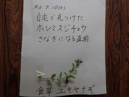 令和3年7月10日、奈良の自宅に植えている「ユキヤナギ」の葉に、「ホシミスジチョウ」の幼虫を見つけました。