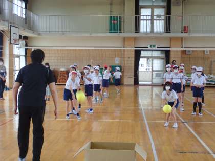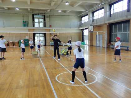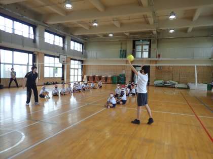 担任の先生もがんばりました。子どもたちも、銅メダリストのスパイク(アタック)を受けて、打ち返すことができるようになりました。