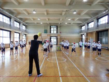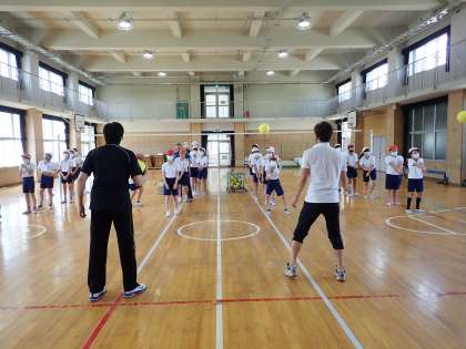 担任の先生も、頑張りました。子どもたちもだんだん慣れてきて、スパイクも打つことができるようになりました
