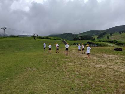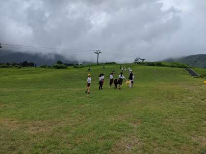 予定している開舎式までの時間があるので、お弁当を食べた後は、ハチ高原での自然を味わいました。さわやかな空気を味わいながら、トンボを捕まえたり遊んだりしました。
