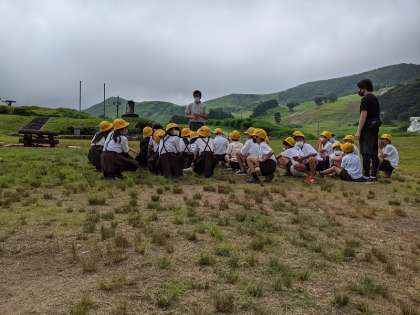 開舎式の後は部屋に荷物を置いた後、避難訓練を行いました。宿舎の方からの話をしっかりと聞き、安全経路の確認を行いました。