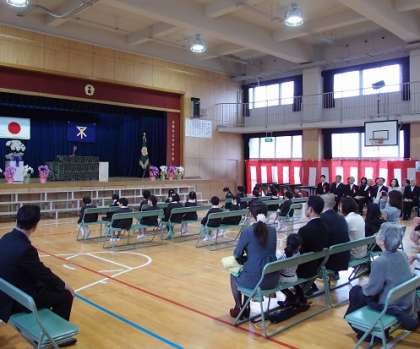 平成27年度大阪市立今福小学校入学式を行いました。新1年生は元気よく入場し、校長先生やPTA会長のお話をしっかり聞けていました。2年生が1年生を迎える歓迎の演技を披露してくれました。入学式終了後、保護者の皆さんへのお話の間、教室で本を読んでもらいました。