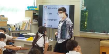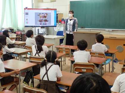R3.9.17昨年度に続き、樟蔭学園のポロナ先生(Polona)から、本日は3時間の特別授業(英語)を行っていただきました。