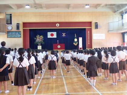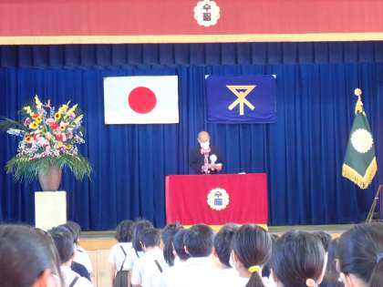 校長の式辞の中では、主に創立90年の歴史についての話をしました。また、この地に今福という村が千年も前に存在したことや、150年前に今福村に「今福小学校」が創設されていたことも紹介しました。