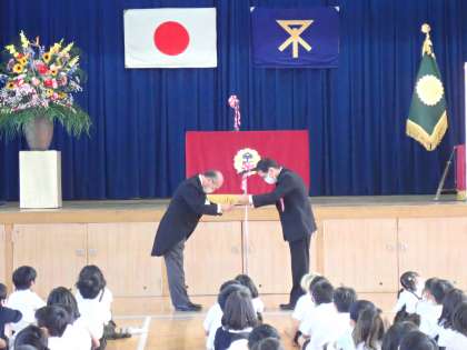PTA会長の内藤明法様より、次のとおり、本校に記念品の贈呈がありました。