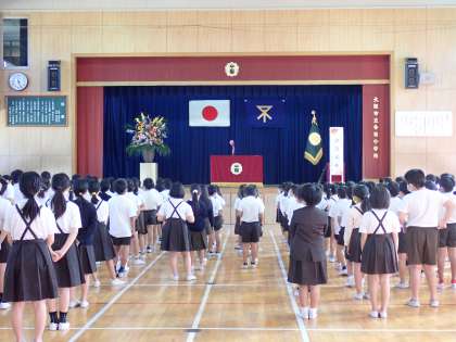 児童・教職員を代表して、「今後も学校教育活動を充実させ、10年後の100周年に向けて頑張ります。」とお応えしました。