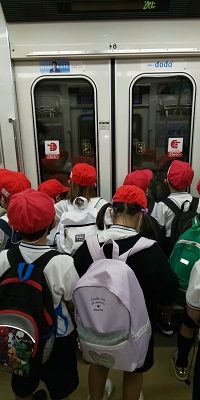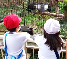 今日は待ちに待った天王寺動物園への遠足です。初めてみんなで乗る電車、ドキドキしながら乗りました。車内では先生に教えてもらったルールをしっかり守って乗ることができました。見学は2年生と1年生がペアになり、2年生は1年生をしっかりと連れて行っていました。近くで見る動物に大興奮!お目当ての動物を間近で見てさらにテンションUP!!大満足でした。お弁当タイムは、なかよく輪になって「いただきます!」さらにおやつも食べてニコニコ顔です。帰りの道は「歩こう−、歩こう−♪♪」と歌いながら初めての遠足は楽しく終わりました。