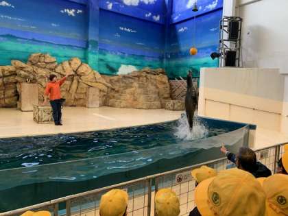 それぞれのチームで、限られた時間を有効に使い、見て歩きます。アシカショーも見学。ジャンプの高さやいろいろなパフォーマンスにびっくり!そうそう昨日の水族館の方のお話も思い出して、体や泳ぎ方をチェック!違いはばっちりOK!!👍