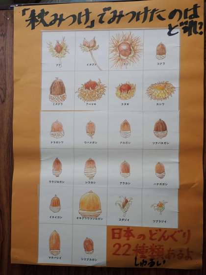 校長室前に、「どんぐり」22種類を掲示していますので、参考にしてください。