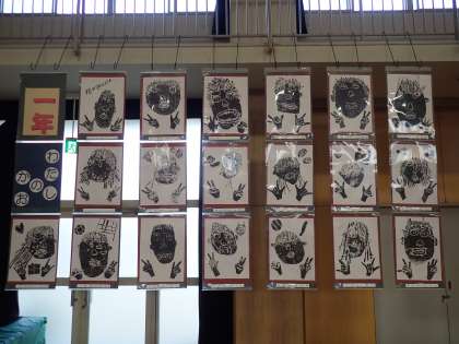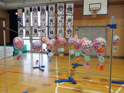 1年生は、平面「わたしのかお」と立体「ききゅうにのって」のテーマで、想像力を果たして一生懸命頑張って作品を仕上げました。