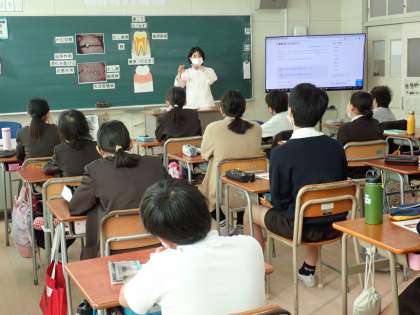 本日11月26日(金)、歯科衛生士さんをお招きして、6年生を対象に「歯と口の健康教室」というテーマで特別授業をしていただきました。