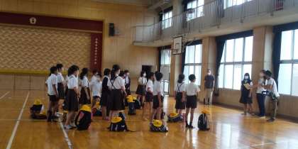 9月2日、5年生全員そろってハチ高原に出発します。待ちに待った林間学習。ハイテンションで、エイエイオー!!行ってきまーーす!!