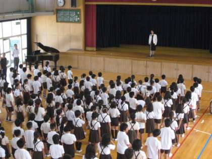 台風の影響で明日17日の終業式ができないことが考えられたため、本日16日に臨時の終業式を行いました。校長先生からは、1学期を振り返って「いのちいちばん」「にこにこにばん」を意識して生活できたかなの問いかけとともに、夏休みでも大切にしてほしいとのお話がありました。生活指導の先生からは夏休み中の交通安全や防犯についてのお話がありました。最後に、校歌を歌って終わりました。明日は、台風が過ぎ去ってくれると、1学期の最後の1日を学校で過ごせるのですが・・・。