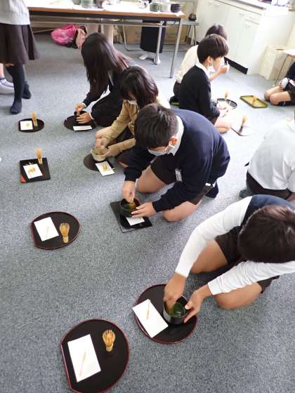 本日、5年生の茶道体験を実施しました。グループ「ももの会」から講師をお招きし、茶道についての歴史や作法について講義を受けた後、実際に茶道の作法を体験しました。日本の伝統と文化について学ぶ良い機会となりました。