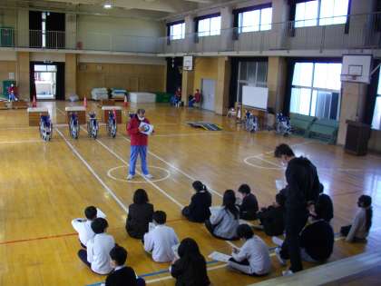 本日、4年生が車いすの体験学習を行いました。大阪市立心身障がい者リハビリテーションセンターの方々に指導していただき、車いすの正しい使い方や、乗っている方に不安を与えないような配慮の仕方について学びました。児童にとってはとても貴重な体験となりました。