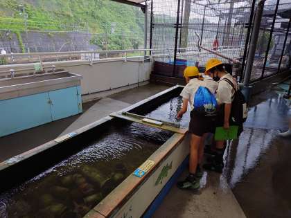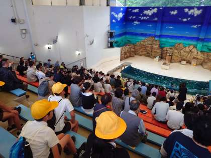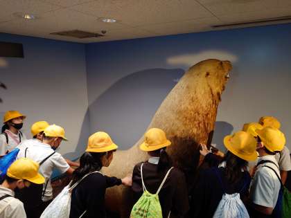 水族館では、アシカショーを見たり、タッチング水槽でエイやたことふれあいました。トドのはく製にもこわごわタッチ。おっきいね。トドってどんな鳴き声だったかな?
