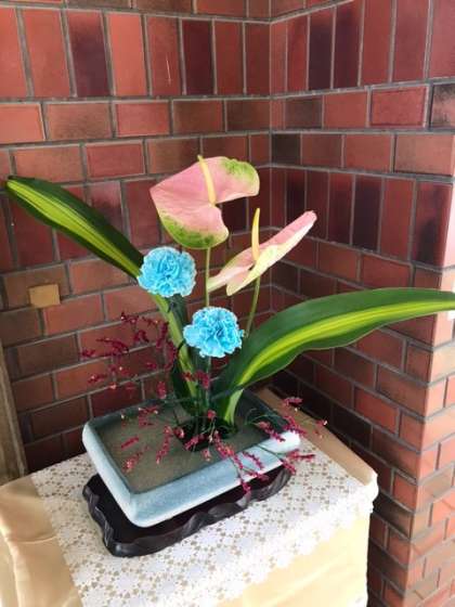 本校では、地域の方のご厚意により、玄関ホールにお花を活けていただいています。毎月のお心遣いに感謝申しあげます。おかげさまで、子どもたちも教職員も明るい気分にさせていただいています。