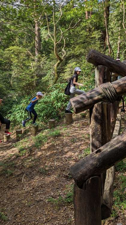 冒険の里という名前の通り、かなり急な道を通りながらアスレチックにチャレンジします。果たして無事に、ゴールできるのでしょうか。